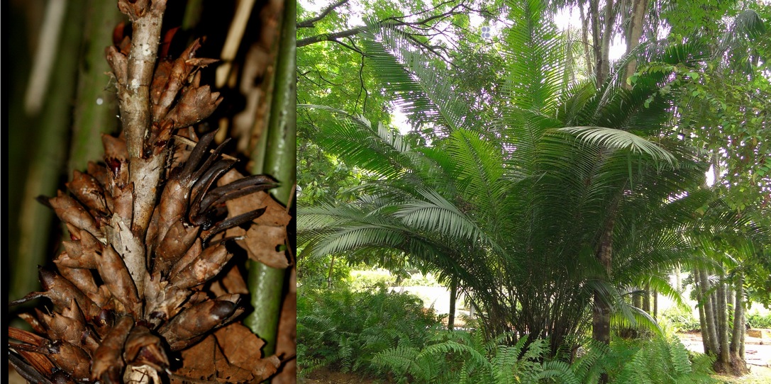 Si j’ai fait figurer le petit animal et la production florale et fruitière du palmier côte à côte, c’est qu’ils vont de pair : l’éthylisme de l’un est lié à la production de nectar floral de l’autre tout au long de l’année. C’est une relation mutualiste qui s’est établi entre les deux : le végétal profite de ces visites qui assurent la dispersion de ses ses grains de pollen aux arbres voisins transportés dans les babines, moustaches et poils du ptilocerque.
