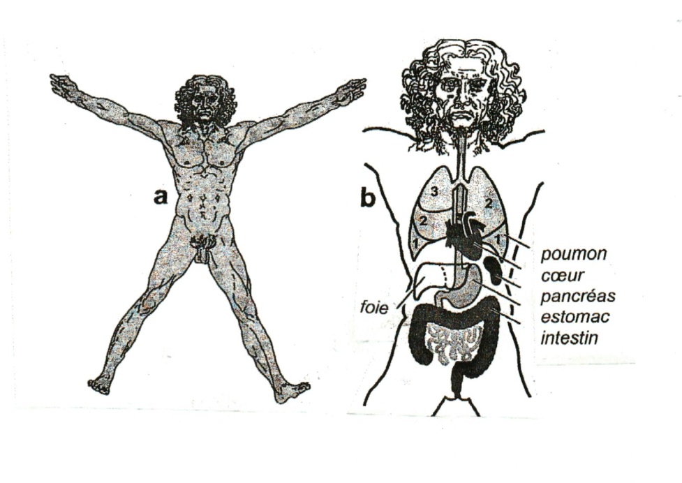 Je crois que nous ne viendrons pas à bout de ce vaste problème « pourquoi tant de droitiers » dans cette trop courte chronique. Certes nos ancêtres poissons étaient d’apparence animaux très symétriques, le droit ne l’emportant pas à première vue sur le gauche. Mais l’étaient-ils vraiment ? Comme en toute chose, il y a le paraître et l’être. De ce point de vue, l’homme de Vitrure de Léonard de Vinci, modèle d’équilibre et de symétrie, expose lorsqu’on l’écorche, une réalité bien différente puisque est mise en lumière l’asymétrie de la distribution de ses organes internes.