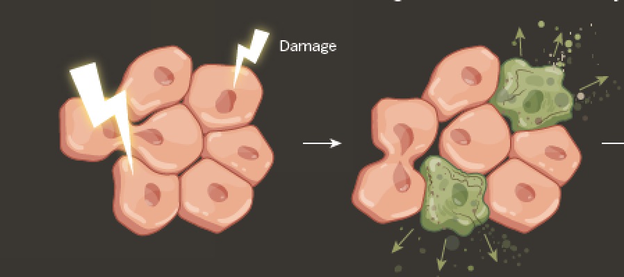 - Les conséquences : devenues sénescentes, ces cellules ne se divisent plus et rejettent les protéines en particulier les cytokines qui attirent les molécules immunitaires.