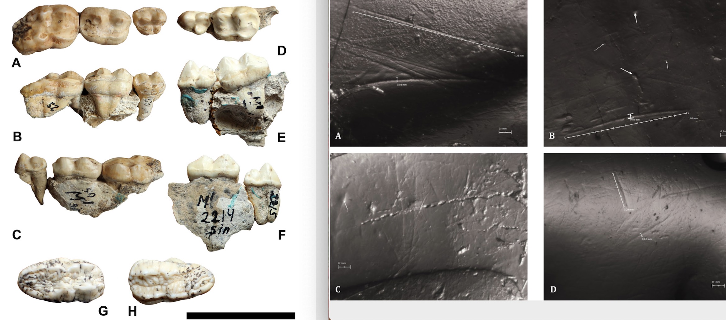 La plus ancienne incursion du genre Homo hors d’Afrique est archivée dans le site de Dmanisi en Géorgie (1.8 ma). Le même gisement révèle une faune de grands mammifères très diverse, 28 espèces, avec des herbivores et des carnivores de toute trempe et toute taille. Dans ce registre, l’ours étrusque est très abondant. Etait-il tout aussi omnivore que les humains qu’il côtoyait ? Comment et dans quelles conditions les deux espèces ont-elles cohabité en dépit de cette apparente rivalité ? La réponse est dans l’étude des micro-stries des molaires des ours qui révèlent leurs préférences alimentaires (1).