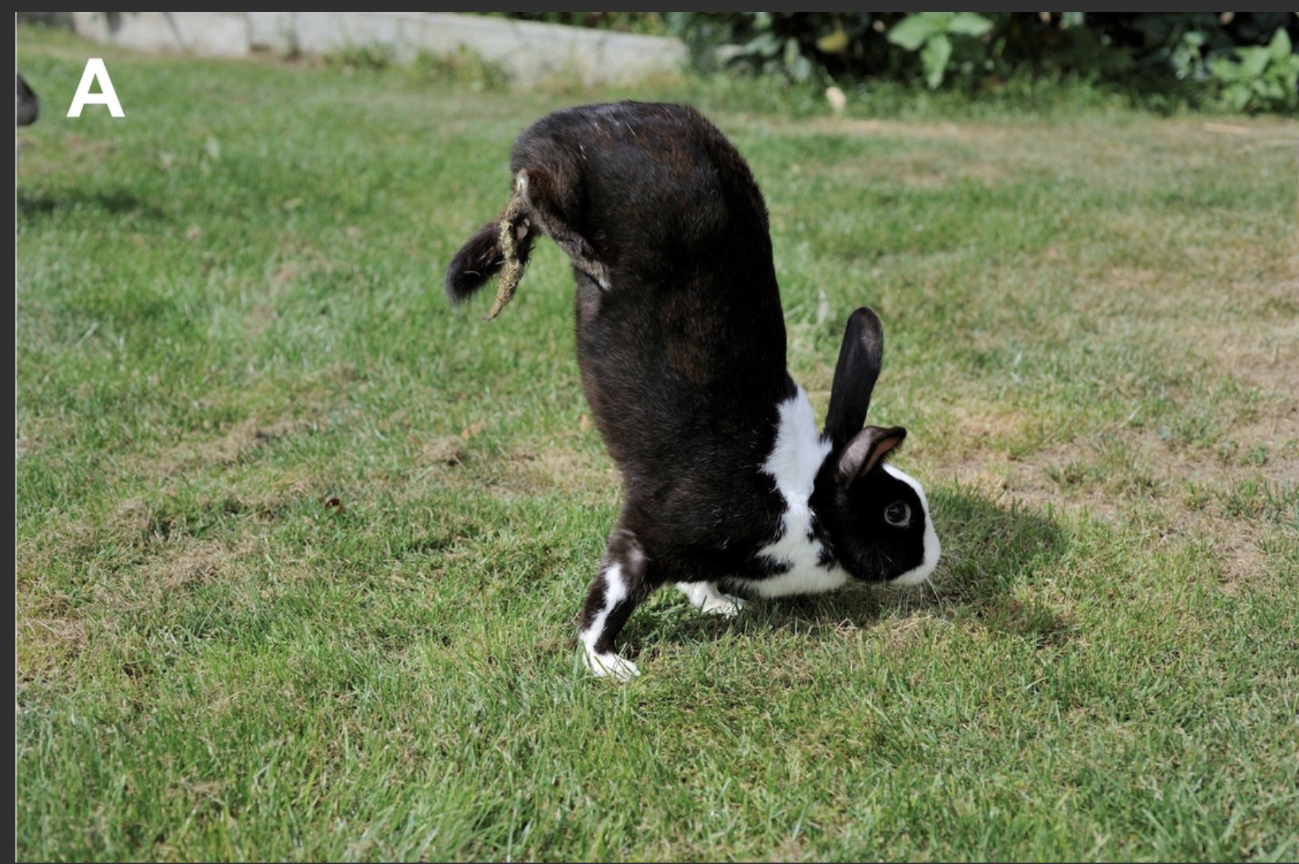 En 1935, dans la célèbre école vétérinaire d’Alfort, fut signalé un comportement étrange et héréditaire constaté dans une lignée de lapins domestiques : de façon spontanée, les sujets affectés de ce syndrome se déplacent par bonds sur les pattes antérieures. Considéré alors comme un animal de cirque, le ci-devant « lapin sauteur d’Alfort » fut un temps rangé parmi une bizarrerie de la nature parmi d’autres.