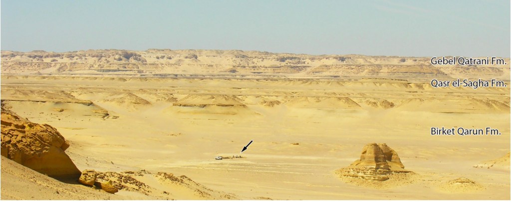 Au milieu du désert du Fayoum en Egypte, à 250 km au sud-ouest du Caire, gisent des dizaines de squelettes de baleines et de siréniens de mer fossiles. Au pied des collines de sables et grès de faible altitude, les vents tour à tour révèlent ou ré-ensevelissent les restes de ces géants du passé qui ont couru les mers de la Tethys ancêtre de notre Méditerranée voici 30 à 40 millions d’années. C’est un spectacle grandiose qui s’offre à l’oeil des visiteurs, si remarquable qu’il a été inscrit au Patrimoine de l’Humanité par l’UNESCO (1).