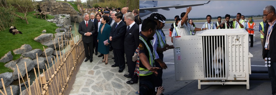 Et puis, le panda est entré en politique et le gouvernement de la Chine lui a proposé un poste d’ambassadeur. C’est ainsi qu’à chaque rencontre internationale importante il a fait parti de la délégation chinoise, qui parfois l’a offert en cadeau. De nos jours environ 400 pandas résident dans des zoos du monde entier où ils sont une attraction lucrative. Mais attention, beaucoup n’y sont pas en résidence définitive : ils sont loués pour 10 ans moyennant un gros paquet de dollars, pas de yuans